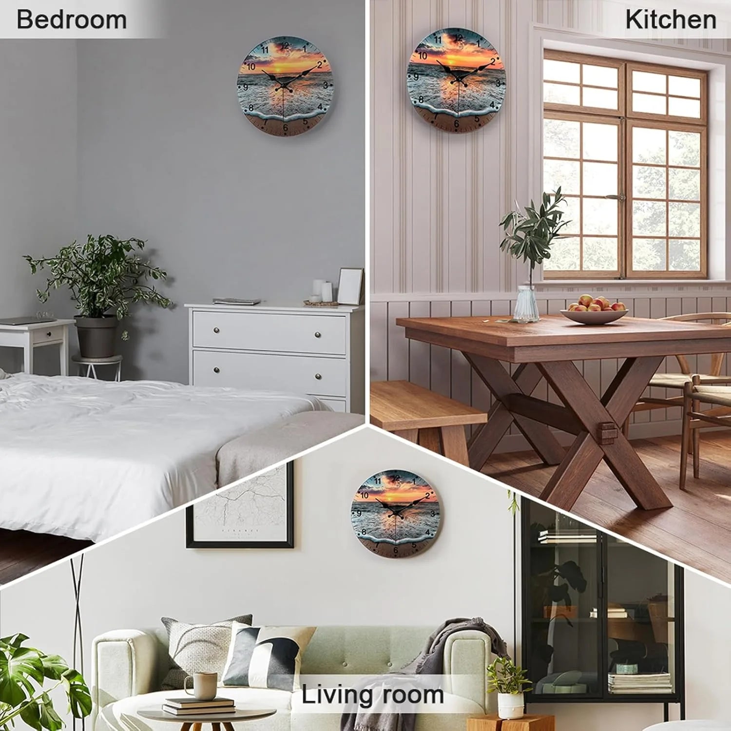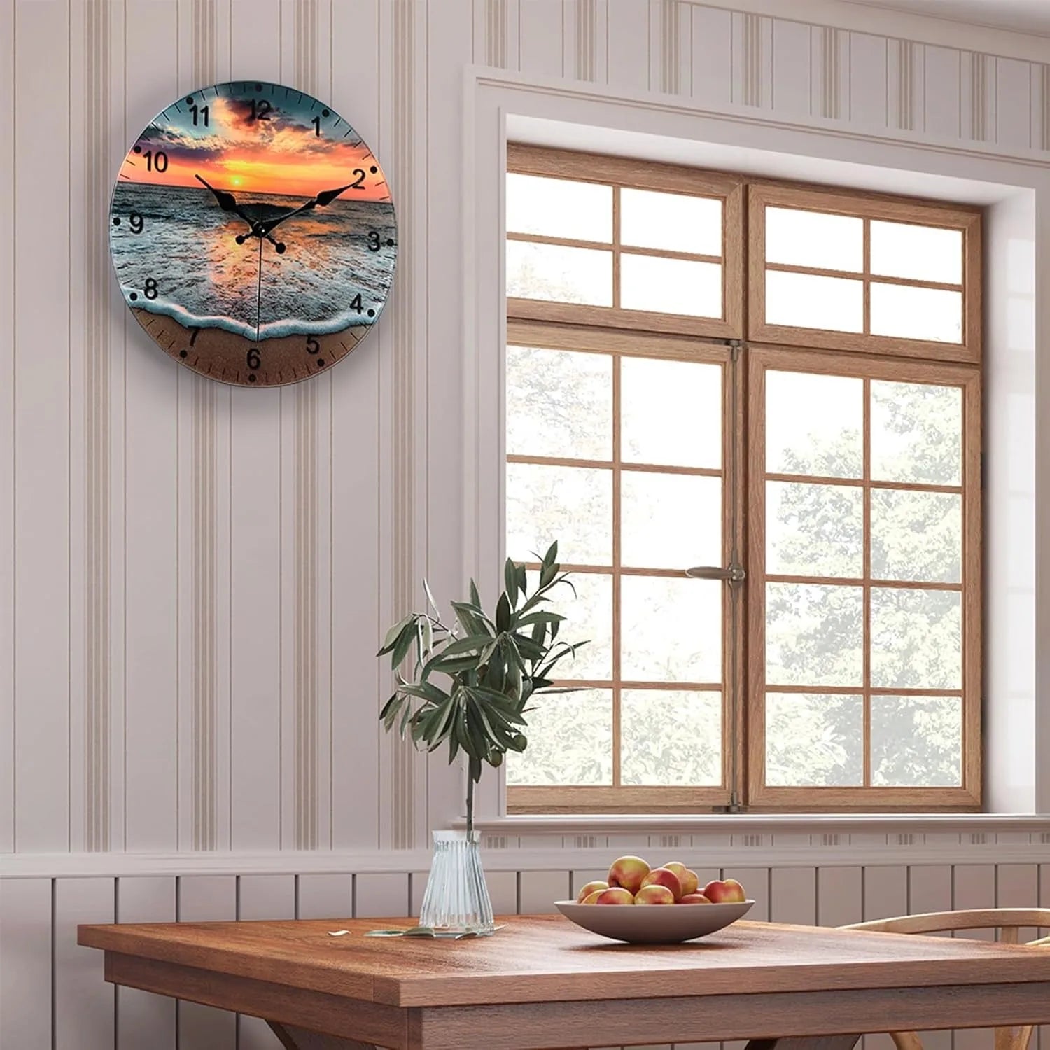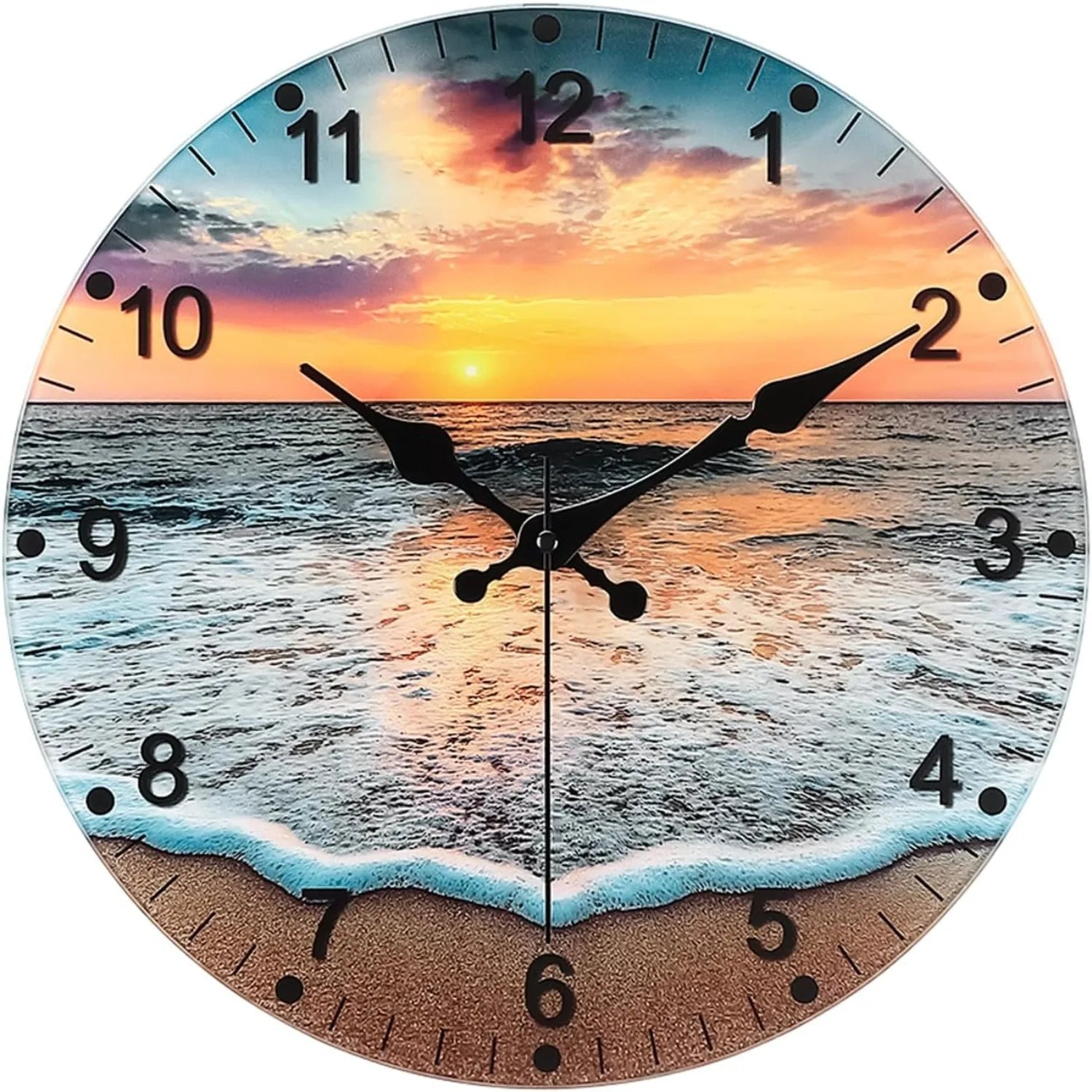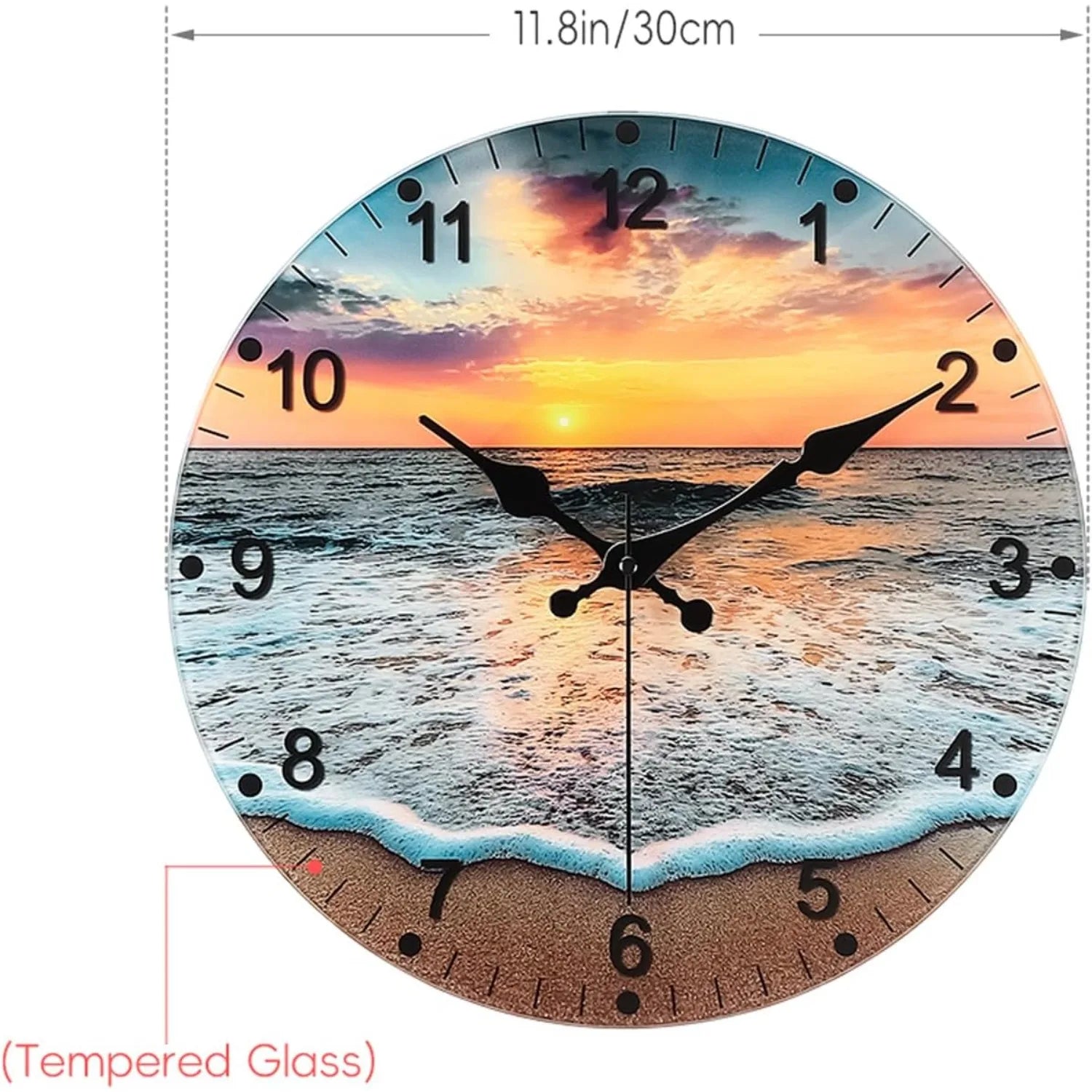 - Stylish Design: The attractive beach sunrise glass face enhances the aesthetic appeal of your living room, kitchen, or any other area.