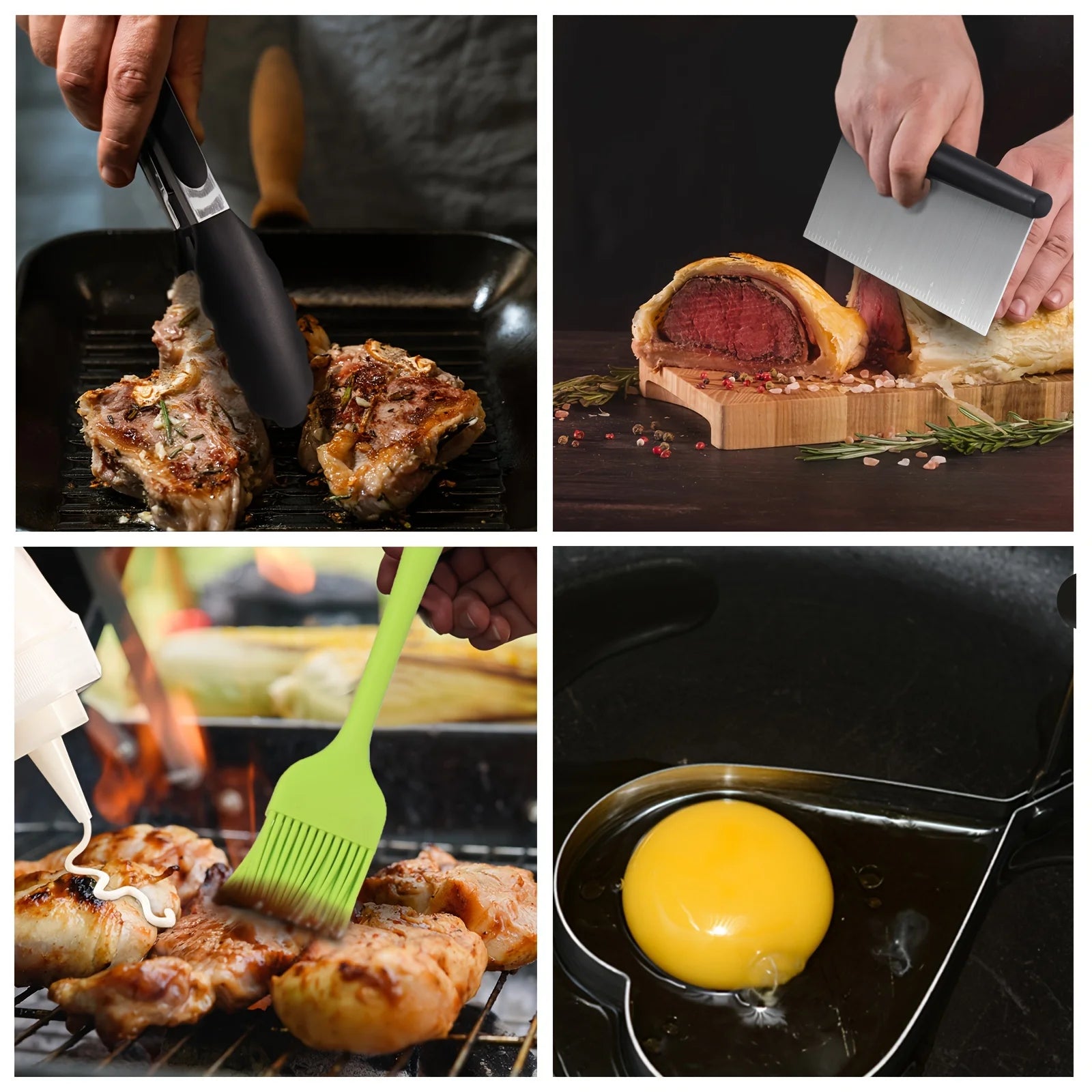 Professional Stainless Steel: Our griddle accessories are made of 304 food grade professional stainless steel, which greatly improves the hardness of the product while being safe and healthy, it can easily shovel food such as hamburgers, patties, steaks and so on. Sturdy and thicker stainless steel is not easy to deform or break during long-term use, making it a perfect barbecue accessory.