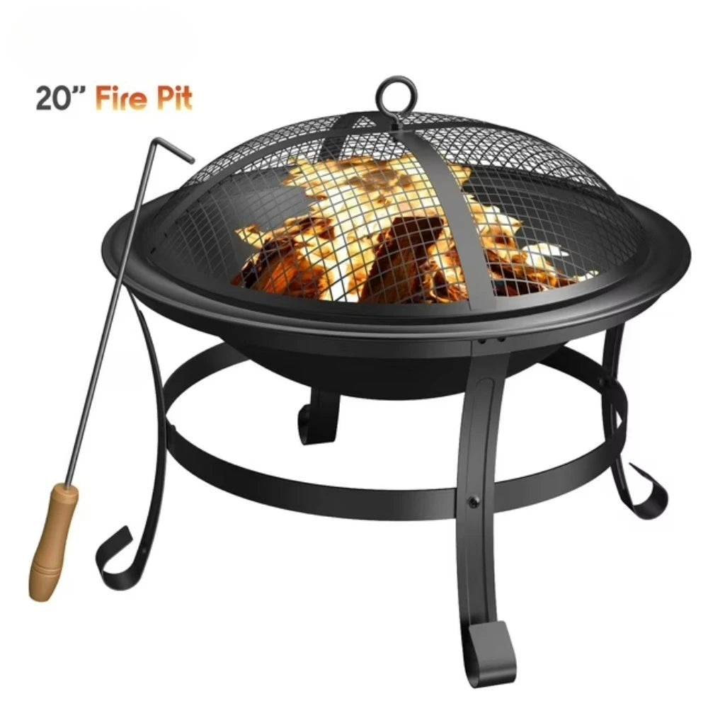 19" Wood-burning Fire Pit with Wire Mesh and Cover f