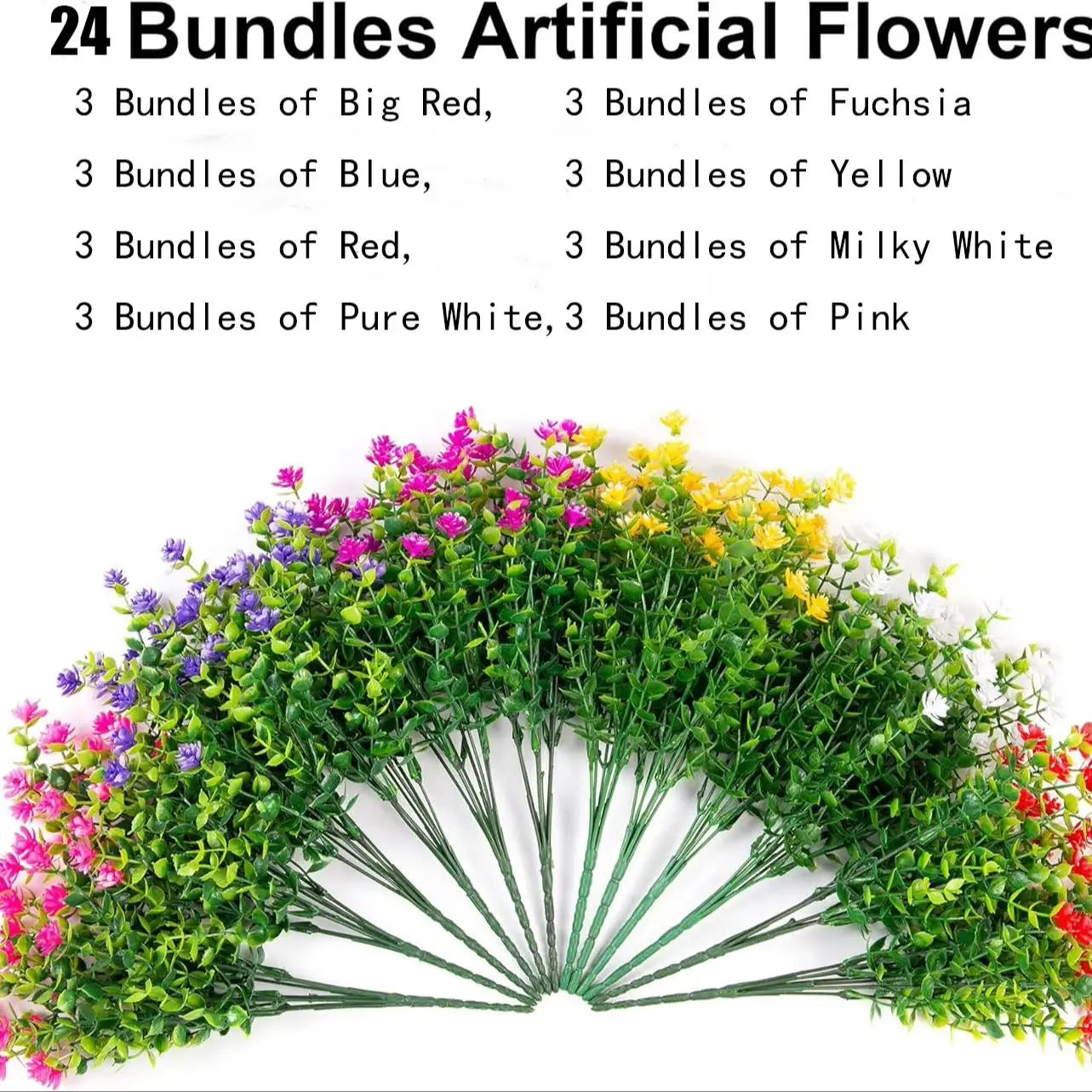 24Bundles,8 Colors, Outdoor Artificial Fake Flowers UV