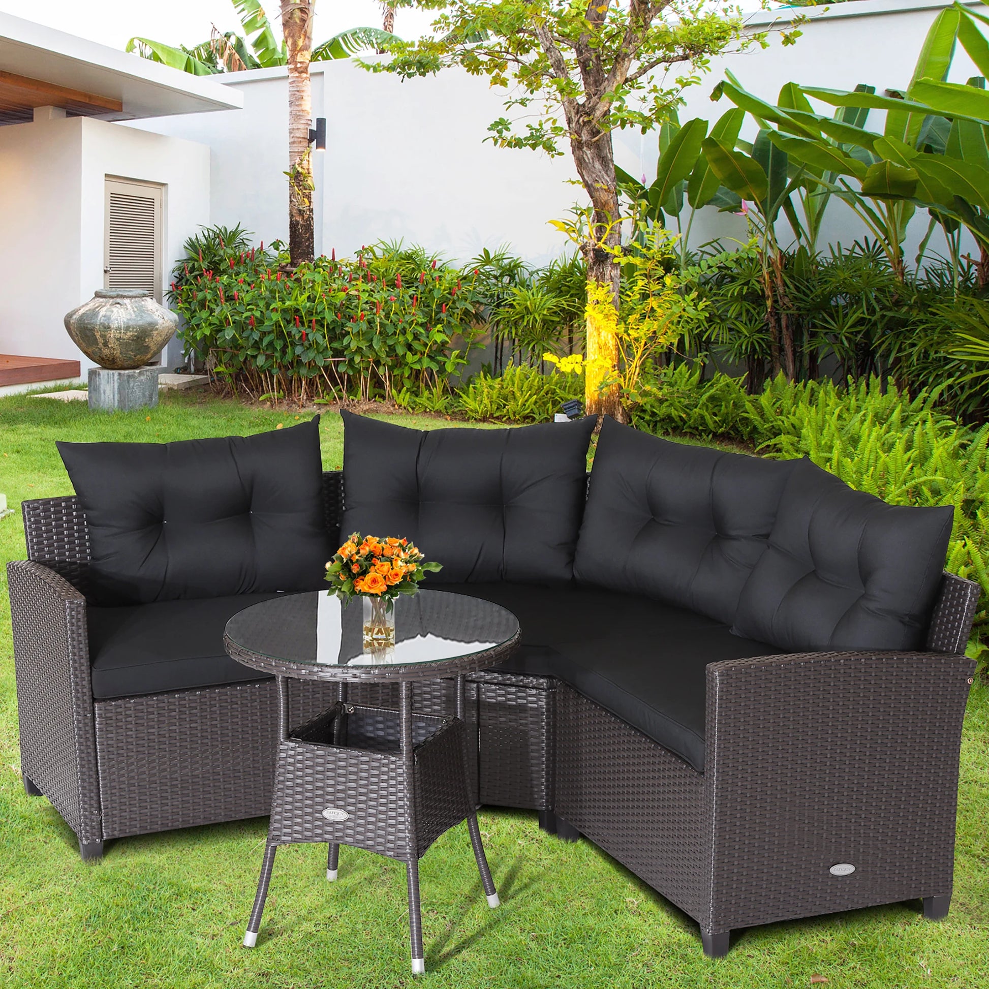 This 4-piece patio rattan sofa set is perfect for outdoor corner spaces.