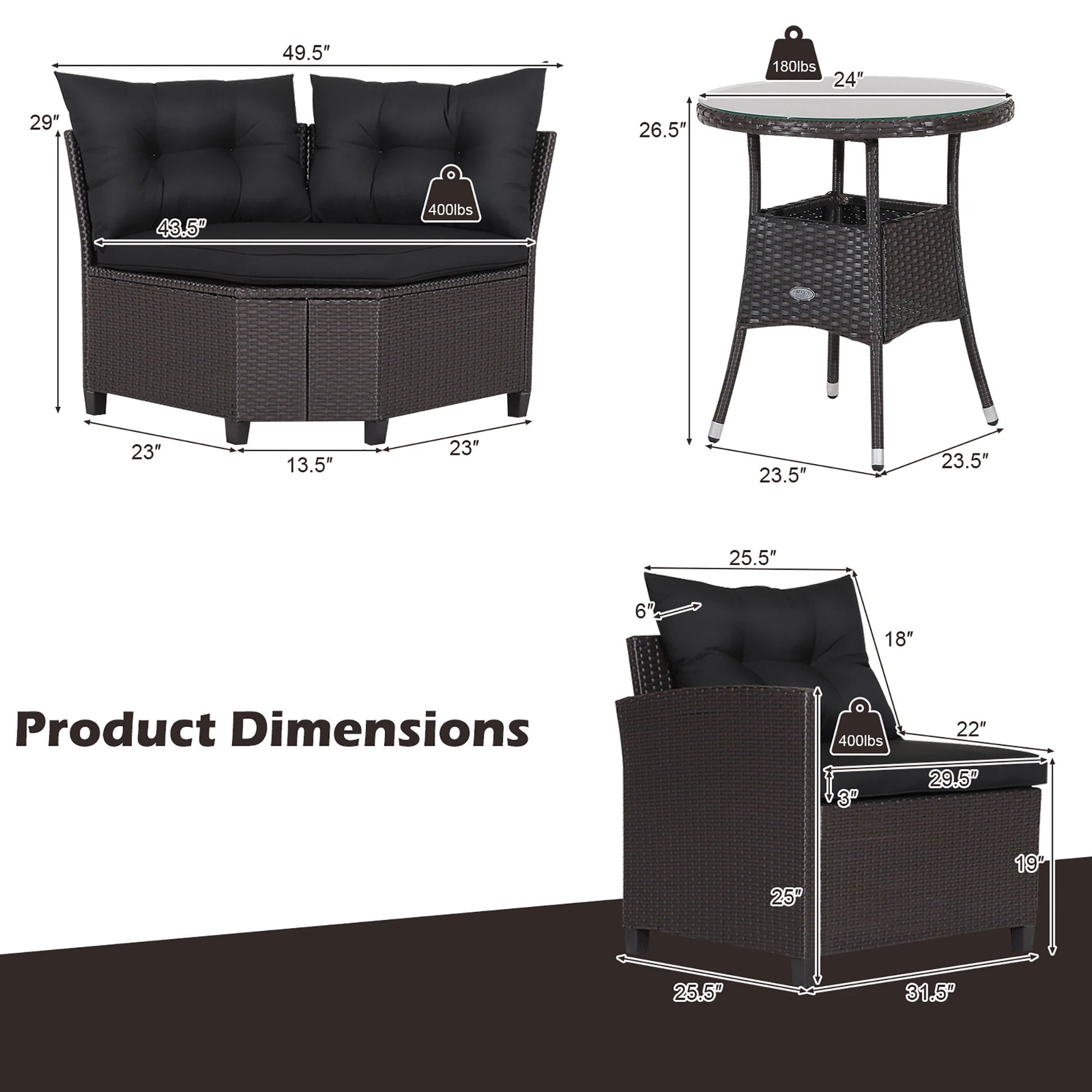 4PCS Patio Rattan Furniture Set Cushioned Sofa Glass Table Garden Black