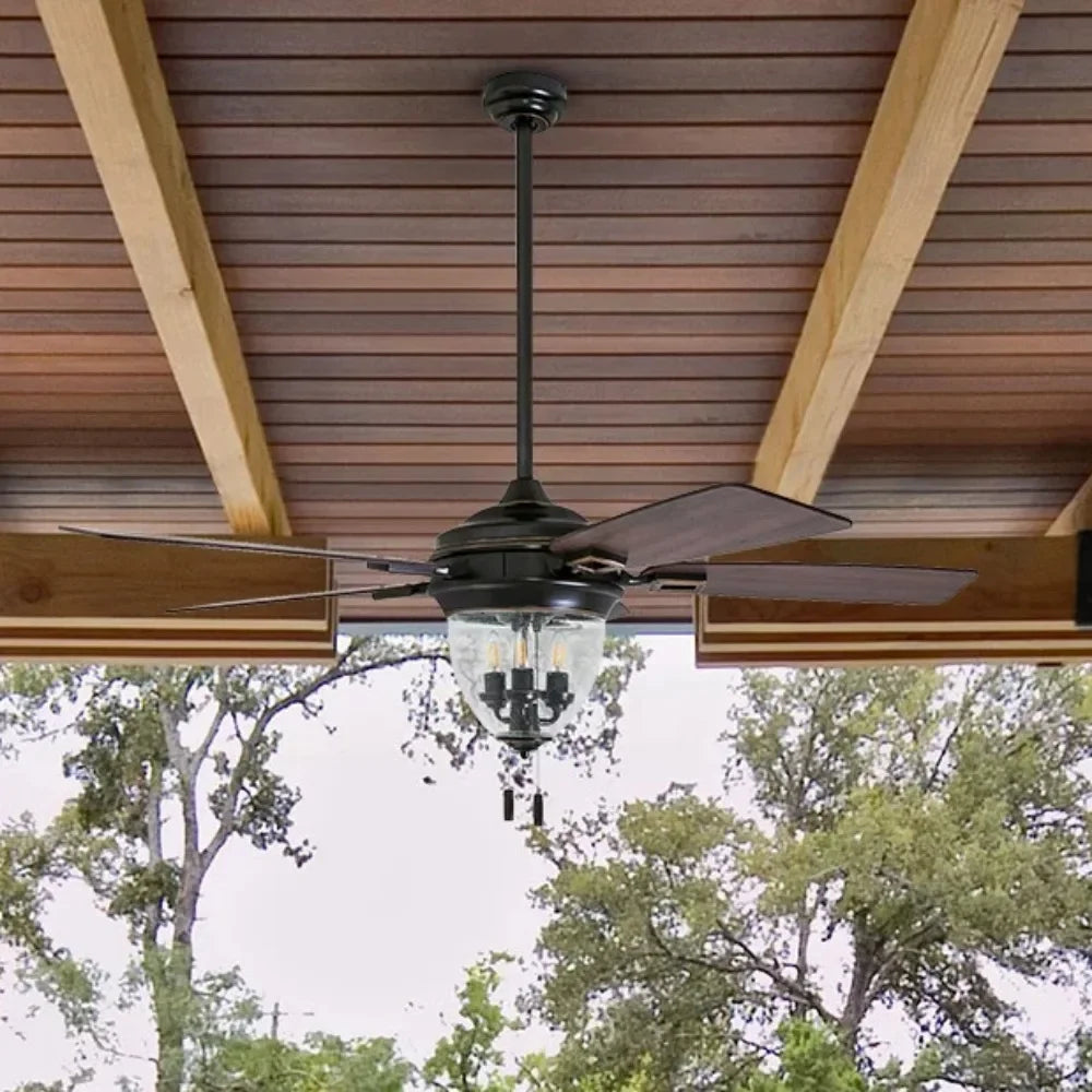 52" Craftsman Industrial Oil Rubbed Bronze LED Outdoor Ceiling Fan With Light Control Cooling Appliances Household Home