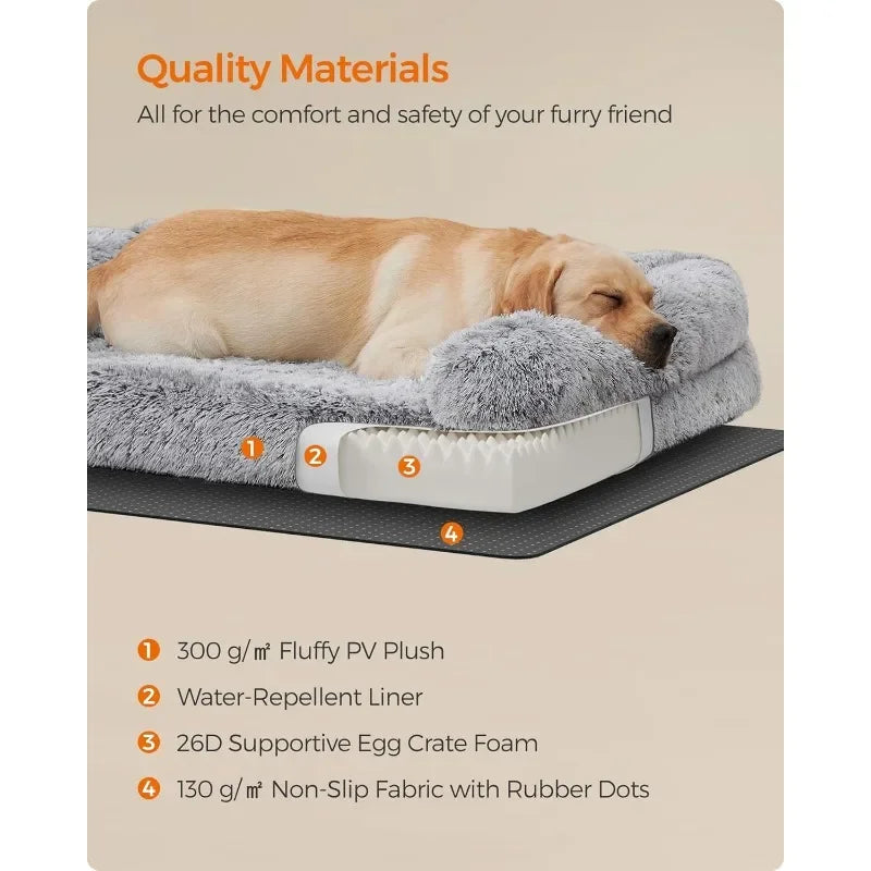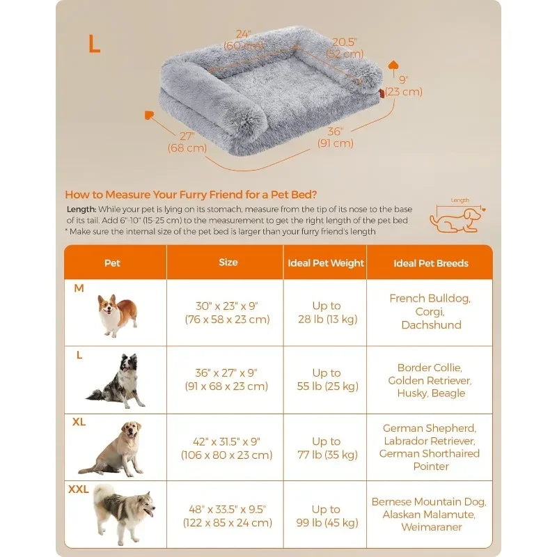 - [Raised Edges, Comfy Support] The thick, raised edges around the dog sofa bed offer a comfy spot for your dog to rest their head and neck while adding a sense of security. Let your furry friend fully relax after long walks or all-day play