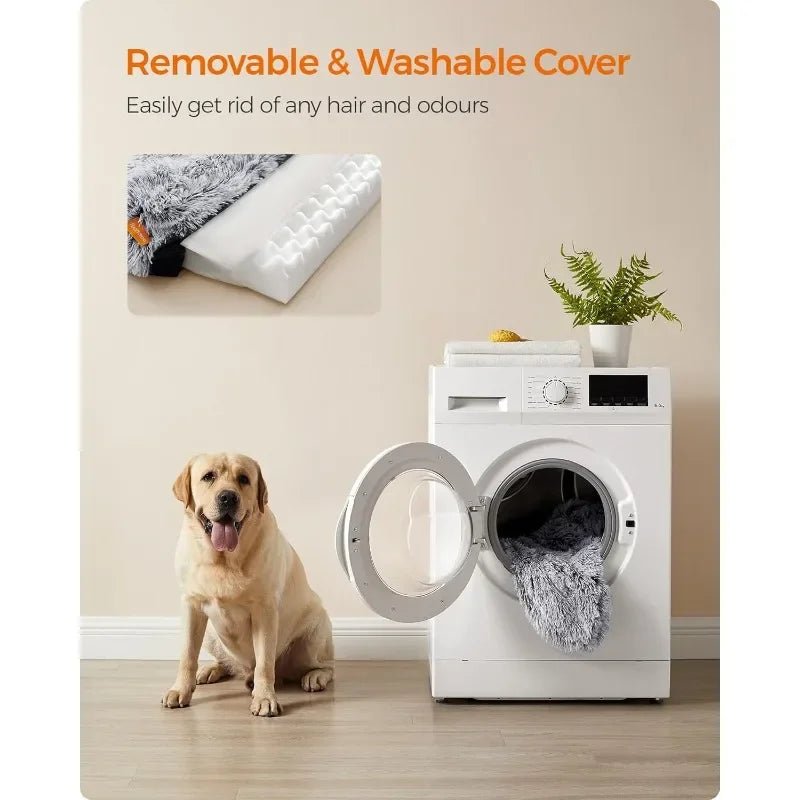 - [Cloud-Like Plush, Instant Calm] Covered with fluffy long plush, this calming dog bed offers cloud-like comfort the moment your dog lies down, soothing their nerves. The long plush ensures they stay warm and snug, promoting deeper, more restful sleep