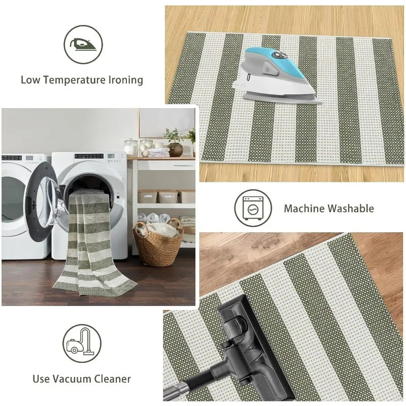 - Easy to Clean: Just vacuum or shake our porch rug to keep it clean. During deep cleaning, it can be gently machine washed and air dried. It is recommended not to use a dryer or bleach