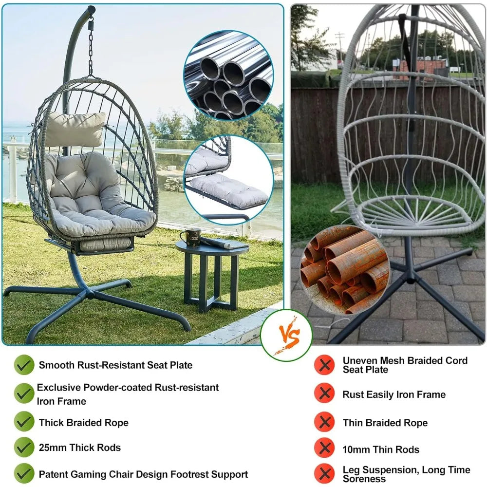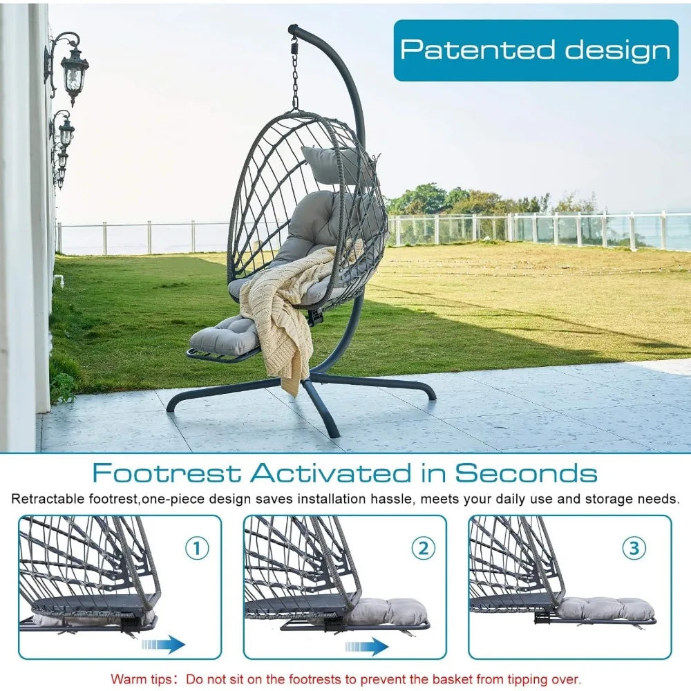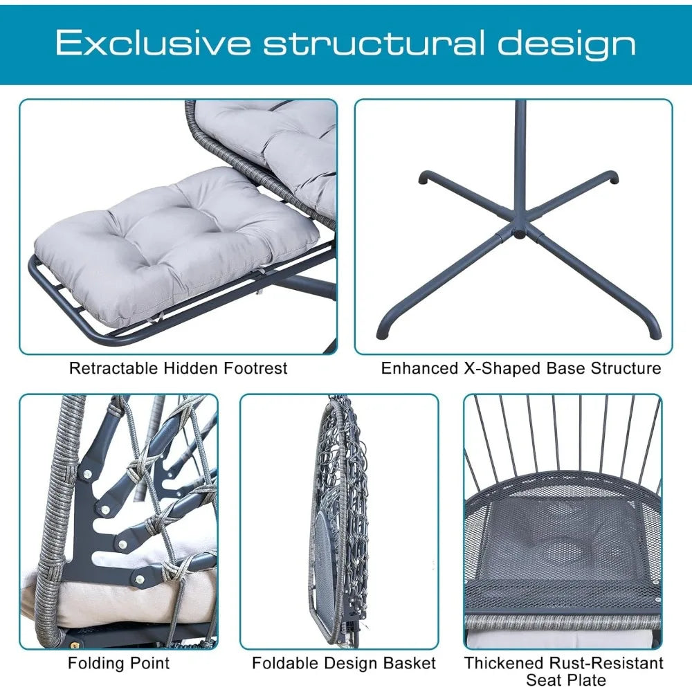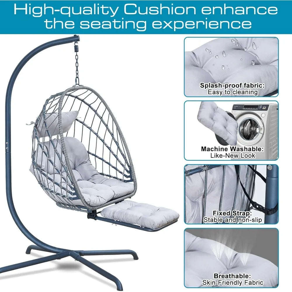 Hanging Egg Chair with Stand and Leg Rest, UV-Resistant Cushion,