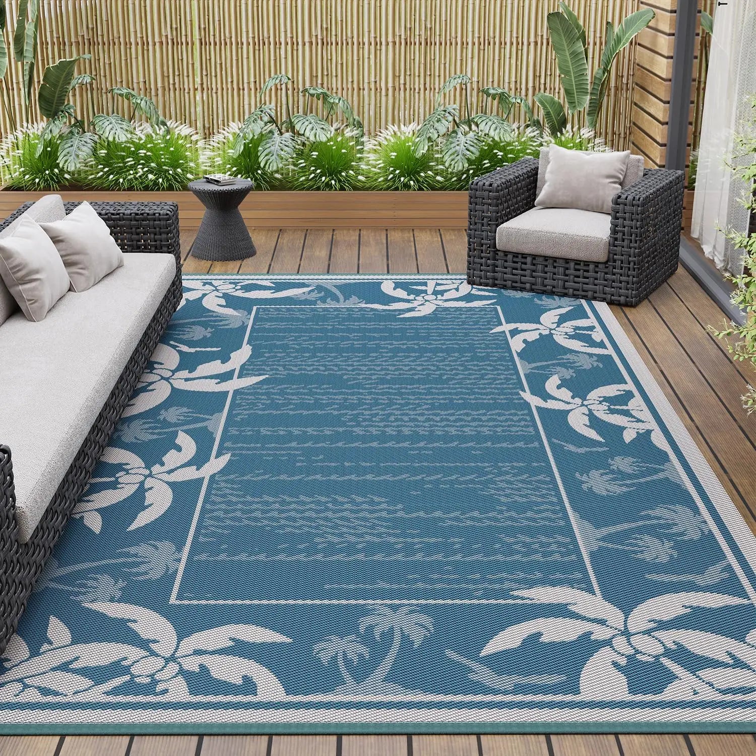 - Reversible Outdoor Rug: Featuring a double-sided tropical coconut tree design in a grey and beige palette, this indoor outdoor rugs bring a relaxing holiday vibe to your outdoor decor. and you can choose both sides to meet your needs, just flip the patio rug to switch patterns.