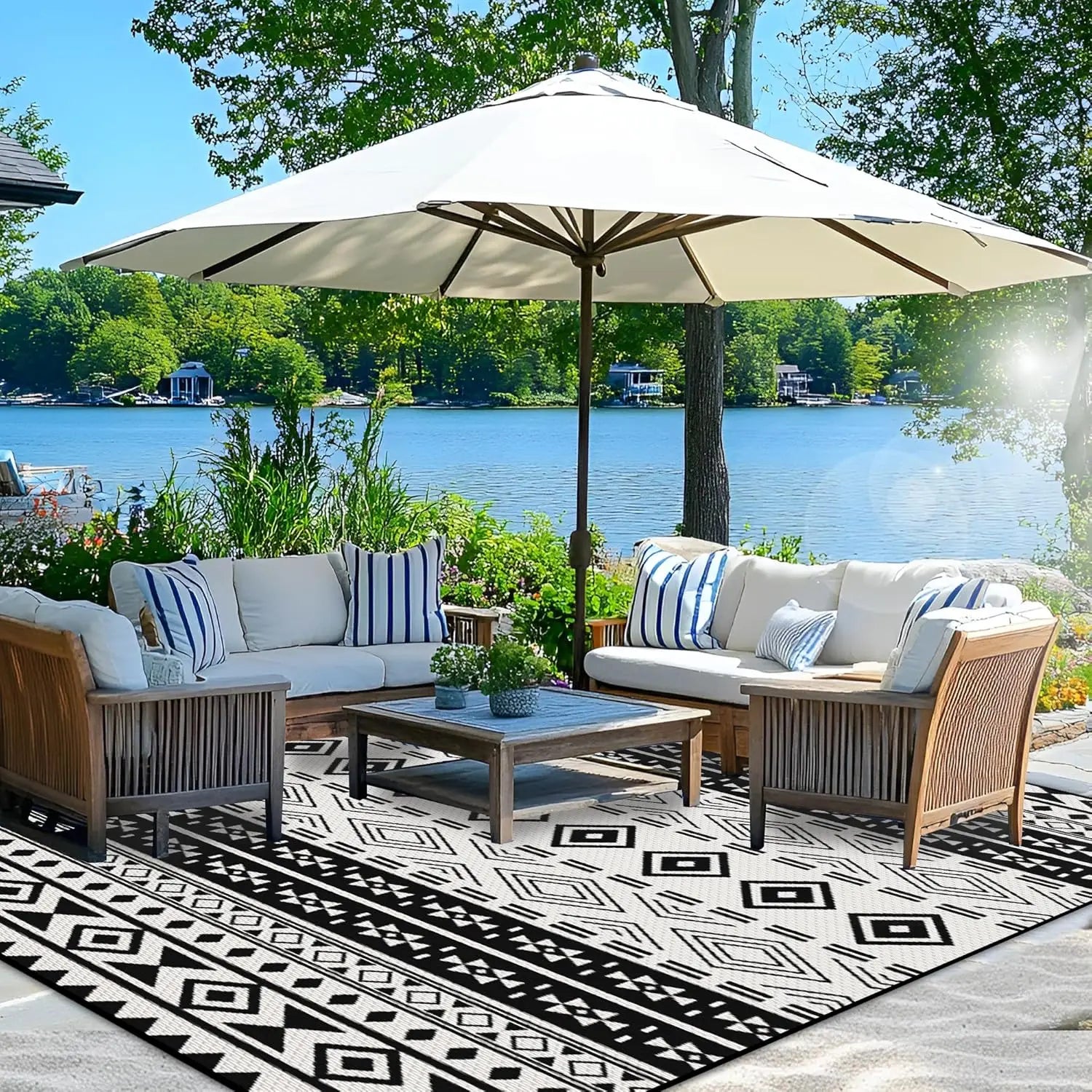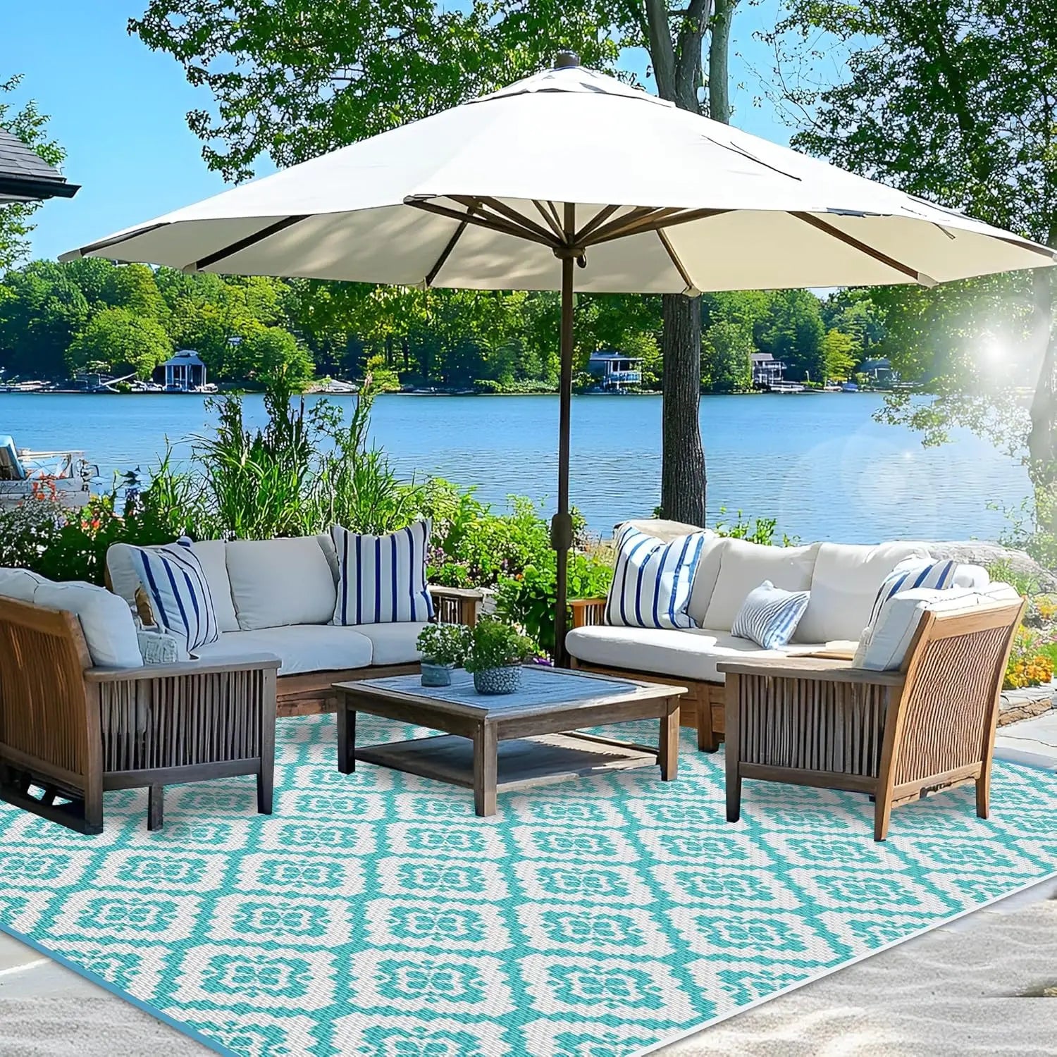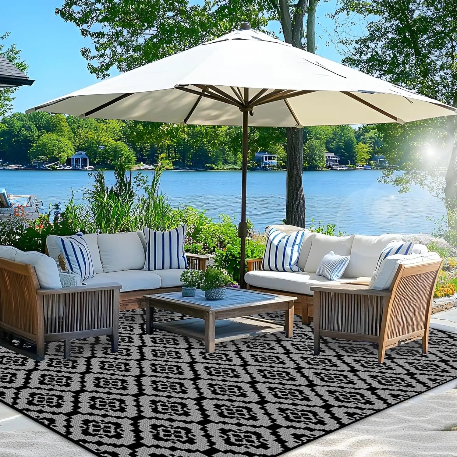 Outdoor Rugs 9x12 ft Patio Waterproof Reversible