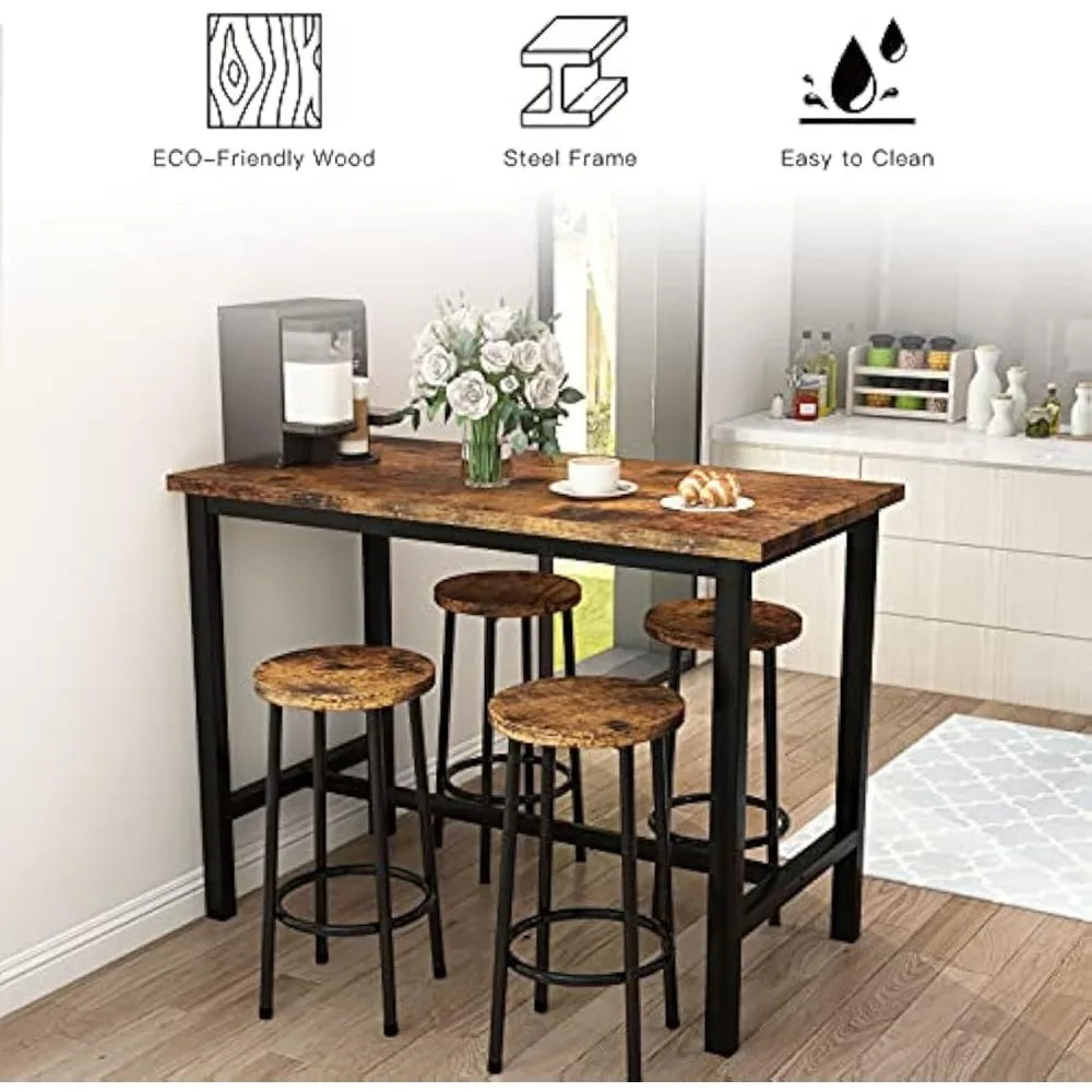 Table Set for 4 Bar with Stools Industrial Counter Height