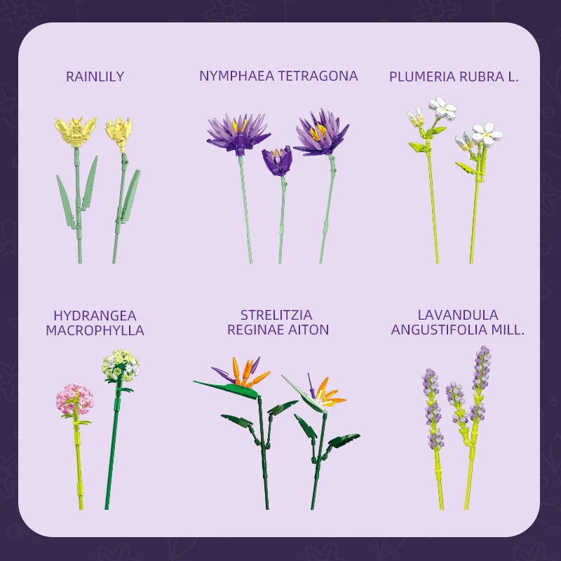Tropical Flower Bouquet Building Blocks Toys Home Decor